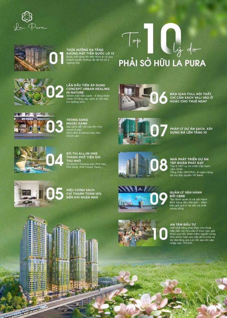Dự án chung cư La Pura của CĐT Phát Đạt với quy mô là khu nhà ở phức hợp cao tầng được triển khai xây dựng tại Thuận An – Bình Dương từ khi ra đời đã tạo cơn sốt trên thị trường BĐS Bình Dương trong năm 2025.
