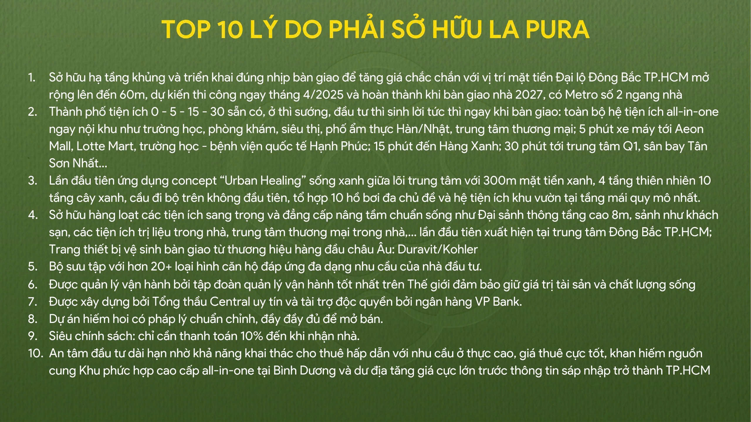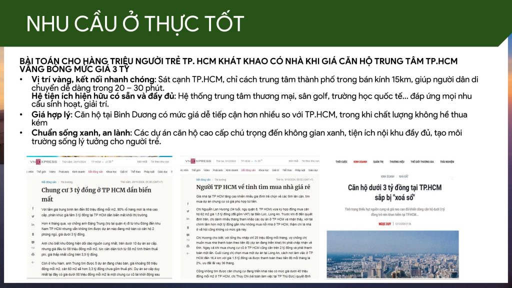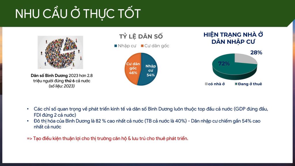 Trở thành cư dân của dự án trong tương lai, mọi người được trải nghiệm cuộc sống chất lượng, thân thiện cùng với môi trường và có hiệu quả cao trong vận hành quản lý về tiết kiệm năng lượng, điện, nước, ánh sáng,…Một khi đi vào hoạt động thì căn hộ sẽ định nghĩa lại tiêu chuẩn căn hộ cao cấp tại Bình Dương trong tình hình cả nước đang vươn mình phát triển, tiến vào kỷ nguyên mới.